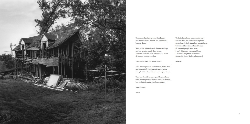 As you contemplate Warner’s spare, formal photographs, you are invited to listen to the cadences and tough-minded humor of everyday speech in the Great Plains. Stark’s afterword grounds the project in the historical relationship between people and their land. In the tradition of Wright Morris, this combination of words and images is both art and document, evoking memories, emotions, and questions for anyone with rural American roots.